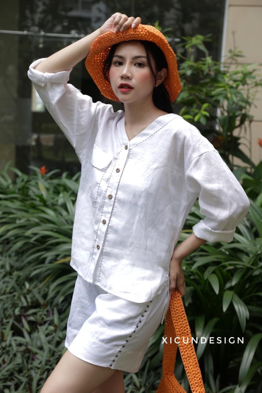 - Kiểu dáng: Áo cổ bà lai, 1 túi, đột chỉ