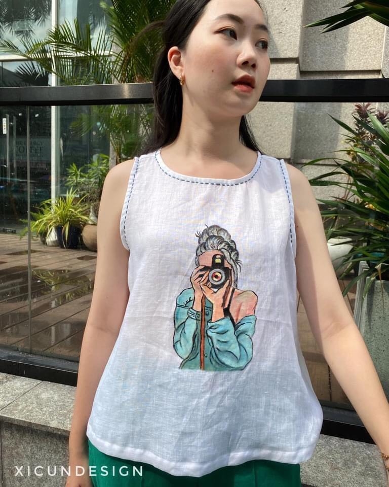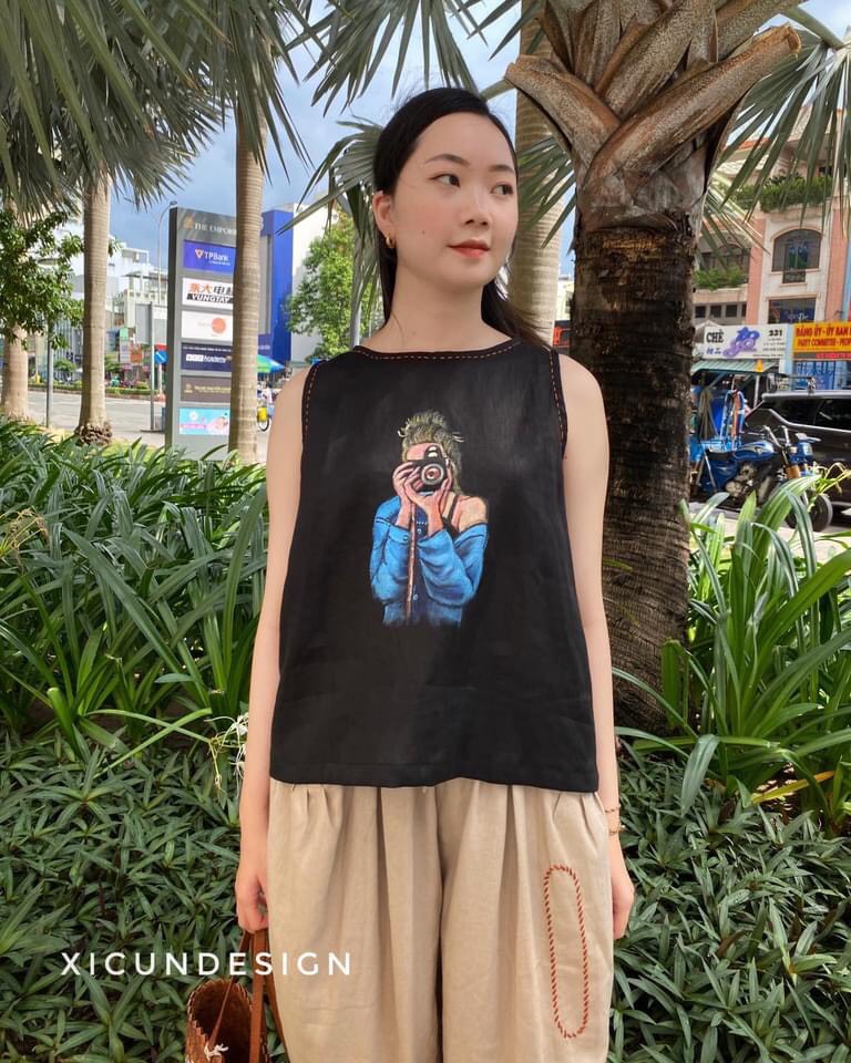 - Kiểu dáng: Áo sát nách, vẽ tay