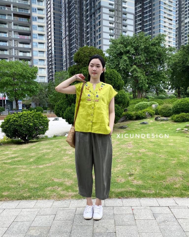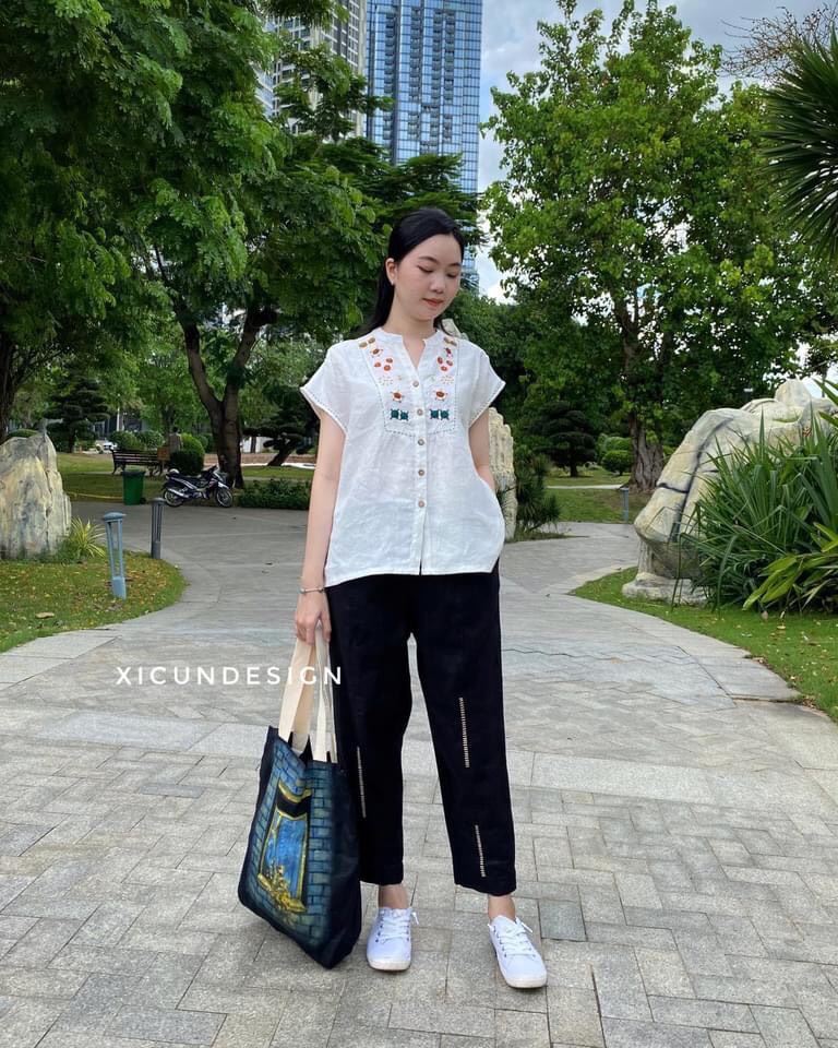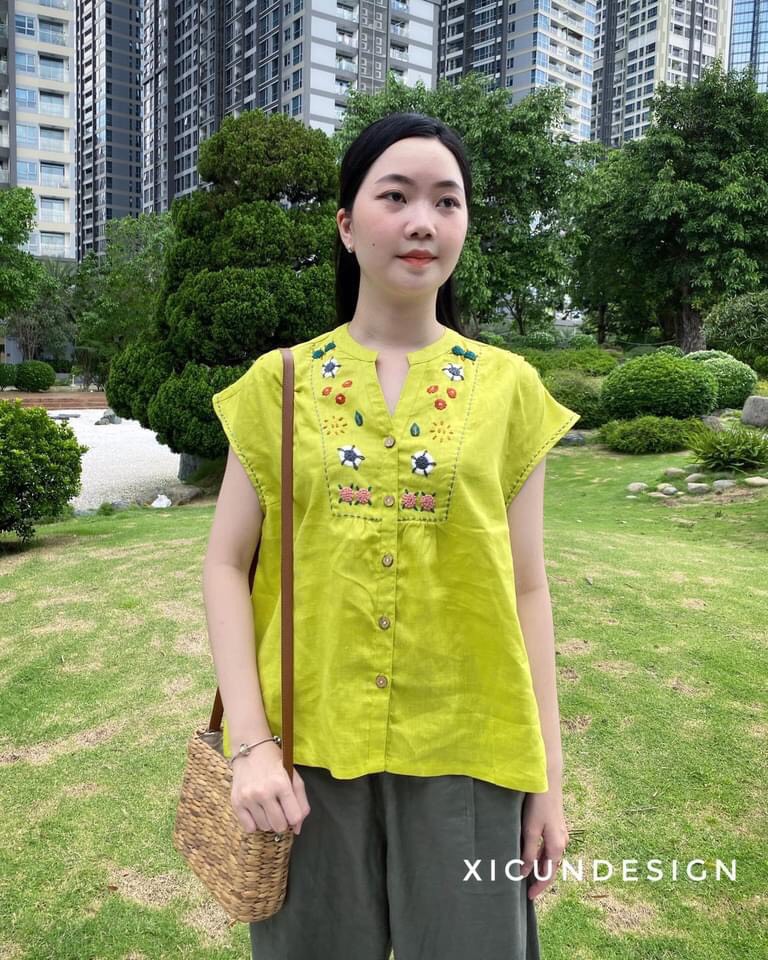 - Kiểu dáng: Áo cổ mao vai liền, thêu tay